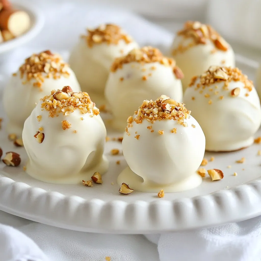 To make Biscoff cookie butter truffles, you need: - 1 cup Biscoff cookie butter - 1 cup crushed Biscoff cookies (plus extra for rolling) - 1 cup white chocolate chips - 1 tablespoon coconut oil (or vegetable oil) - A pinch of sea salt These main ingredients create a tasty mix. The cookie butter gives a creamy base. The crushed cookies add a nice crunch. The white chocolate brings sweetness and a smooth finish. You can make these truffles even better with add-ins: - 2 tablespoons finely chopped nuts (hazelnuts or almonds) These nuts add texture and flavor. Feel free to skip them if you prefer a smoother truffle. You can also try adding spices like cinnamon for extra warmth. Using good quality ingredients makes a big difference. Choose a creamy Biscoff cookie butter with no added oils or fillers. Look for white chocolate chips that melt well. Premium chocolate gives a rich taste. For the best crunch, use fresh Biscoff cookies. They should be crisp and not stale. {{ingredient_image_2}} To start, get a large mixing bowl. Add 1 cup of Biscoff cookie butter and 1 cup of crushed Biscoff cookies. Mix these together using a spatula or your hands. You want it to have a thick, dough-like feel. If it feels too sticky, don’t worry! This mixture will be perfect after chilling. Once your mixture is ready, cover the bowl with plastic wrap. Place it in the fridge for about 30 minutes. This helps the mixture firm up. After it chills, take it out and scoop small portions, about 1 inch across. Roll these between your palms to shape smooth balls. Place the truffles on a baking sheet lined with parchment paper. This keeps them from sticking. Now, it’s time to melt the chocolate. In a microwave-safe bowl, combine 1 cup of white chocolate chips and 1 tablespoon of coconut oil. Heat them in the microwave in 30-second bursts. Stir after each interval until the chocolate is fully melted and smooth. Now dip each truffle into the melted chocolate. Make sure they are well coated. Let any extra chocolate drip off before rolling them in crushed Biscoff cookies or chopped nuts. Place them back on the baking sheet. Let the truffles harden either at room temperature or in the fridge for 15-20 minutes. For a fun touch, drizzle more melted chocolate over the top after they set. Enjoy your tasty truffles! To get the right texture for your truffles, start with room temperature Biscoff cookie butter. This makes mixing easier. Combine it with crushed Biscoff cookies until you have a thick dough. Chill the mixture for about 30 minutes. Chilling helps the dough firm up. It will be easier to roll into balls. Use your hands to shape the truffles. Roll them gently to keep them smooth. Avoid pressing too hard. This will help maintain the soft center. Keep your truffles fresh by storing them in an airtight container. Place a layer of parchment paper between each layer. This will prevent them from sticking together. Store them in the fridge for up to two weeks. If you want to keep them longer, freeze them. Use a freezer-safe container or bag. They can stay in the freezer for up to three months. Just remember to thaw them in the fridge before serving. Presentation makes a big difference! Arrange the truffles in a pretty box or on a cake stand. You can add extra crushed Biscoff cookies on top for a nice look. Sprinkle a bit of sea salt for a gourmet touch. For gifts, wrap them in clear cellophane and tie with a ribbon. This adds a nice personal touch. You can also drizzle more melted white chocolate over the top for extra flair. Let it set before serving. These simple ideas will impress your friends and family! Pro Tips Chill for Best Results: Chilling the truffle mixture is crucial for easier rolling. If the mixture feels too sticky, return it to the fridge for a few more minutes. Perfect Chocolate Coating: Make sure the white chocolate is fully melted and smooth before dipping. This ensures a beautiful and even coating on each truffle. Experiment with Flavors: Feel free to add different flavorings to the truffle mixture, such as vanilla extract or a pinch of cinnamon, for a unique twist on the classic recipe. Storage Tips: Store the truffles in an airtight container in the refrigerator for up to two weeks. They can also be frozen for longer storage—just allow them to thaw in the fridge before serving. {{image_4}} You can change the flavor of your Biscoff cookie butter truffles by using different types of chocolate. Dark chocolate gives a rich taste. Milk chocolate adds creaminess. Each type creates a unique treat. Choose what you like best! You can also mix chocolates for a fun twist. Melt them just like white chocolate, and dip the truffles. If you want nut-free truffles, skip the nuts in the recipe. The texture stays creamy and smooth without them. You can use crushed Biscoff cookies for the coating. This keeps the truffles safe for those with nut allergies. They will still be delicious and crunchy! Mixing other flavors into your truffles can heighten their taste. Adding a little coffee can give a great kick. Just blend in one tablespoon of instant coffee to the cookie butter mix. If you're a caramel lover, try drizzling caramel on top of the truffles. It adds a sweet surprise! You can also use caramel-flavored chocolate to coat your truffles. The options are endless! To keep your Biscoff cookie butter truffles fresh, store them in an airtight container. Place parchment paper between layers to prevent sticking. This method helps maintain their shape and flavor. Keep the container in a cool, dry place away from sunlight. Avoid the fridge unless it’s very hot outside, as cold can change their texture. You can freeze these truffles for long-term storage. First, freeze them on a baking sheet for about an hour until firm. Once frozen, transfer them to a freezer-safe bag or container. Make sure to label the bag with the date. You can enjoy them for up to three months. When ready to indulge, let them thaw in the fridge or at room te