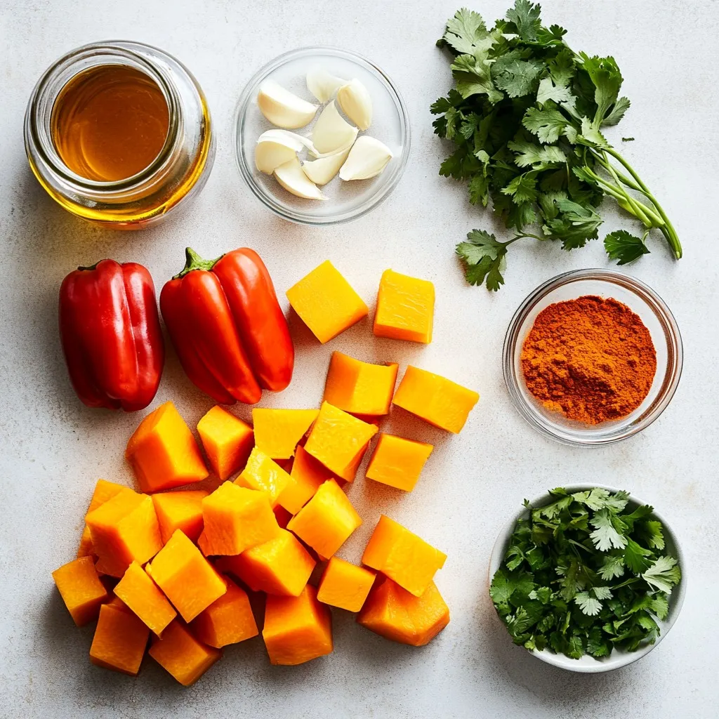 A creamy and flavorful soup made with roasted butternut squash and red bell peppers, perfect for a cozy meal.