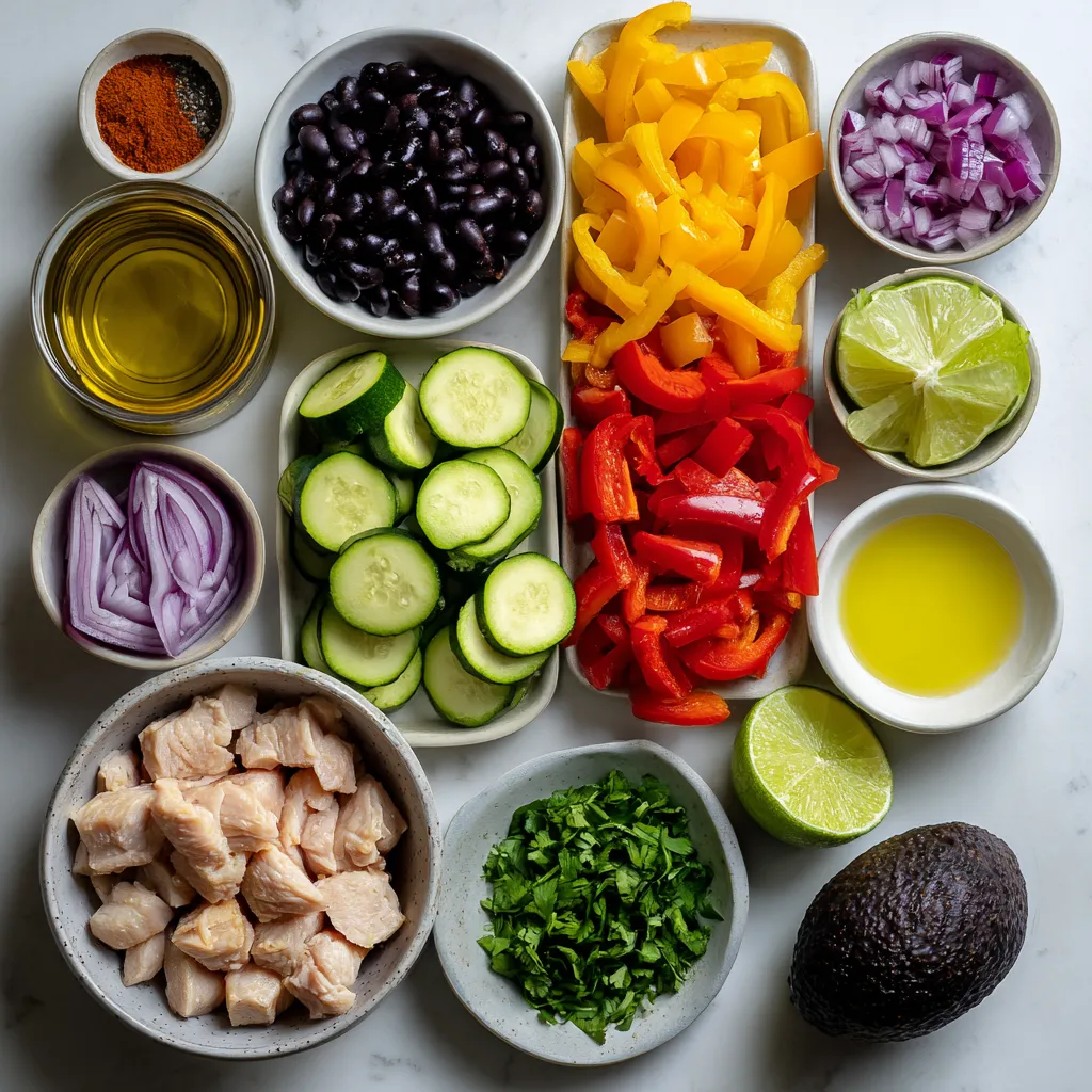 This dish is packed with protein from chicken and fiber from black beans and veggies. Bell peppers and zucchini provide essential vitamins. Using olive oil adds healthy fats. Overall, it’s a wholesome meal that supports a balanced diet.