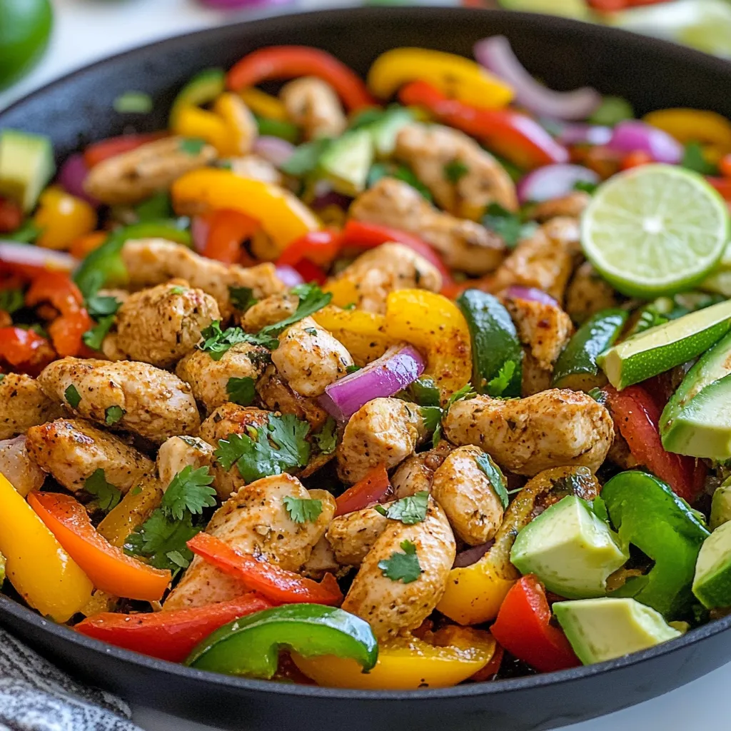 • Spoon the colorful chicken and veggie mixture onto plates or serve it straight from the skillet. Top each serving with diced avocado, a generous sprinkle of fresh cilantro, and lime wedges on the side for an extra zing.