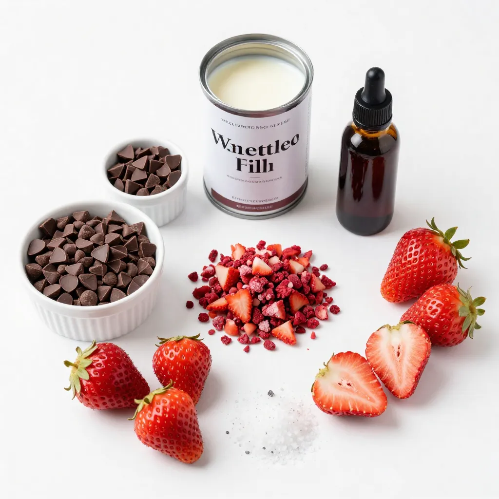 For the freeze-dried strawberries, make sure they are fresh and not too old. They should give a nice crunch and vibrant flavor. If you cannot find freeze-dried strawberries, you can use regular fresh strawberries, but the texture will differ slightly.