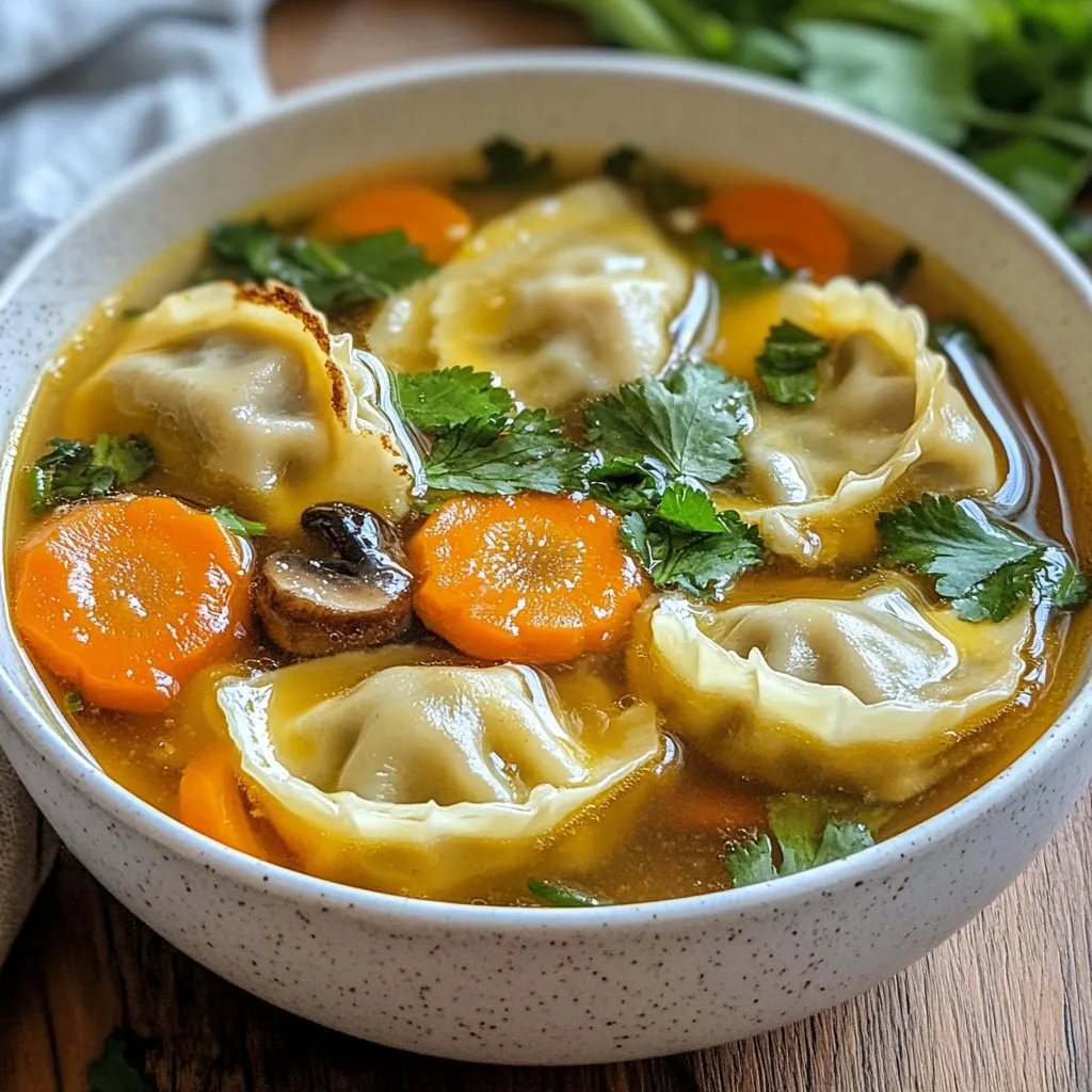 To make a vegetarian or vegan version of gyoza soup, swap the broth. Use vegetable broth instead of chicken broth. For gyoza, choose vegetable-filled types. You can find many options in stores. Mushrooms add a nice chew. Use shiitake or button mushrooms for great flavor. Bok choy and carrots bring color and crunch.