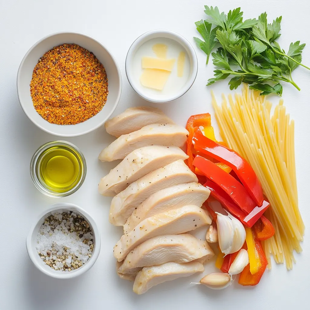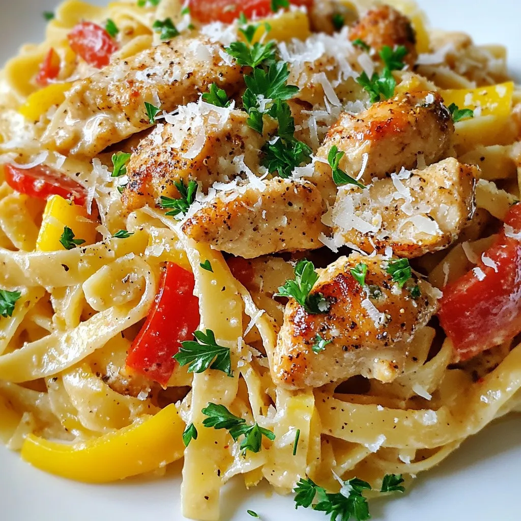 A rich and flavorful pasta dish featuring Cajun-spiced chicken, bell peppers, and a creamy sauce.
