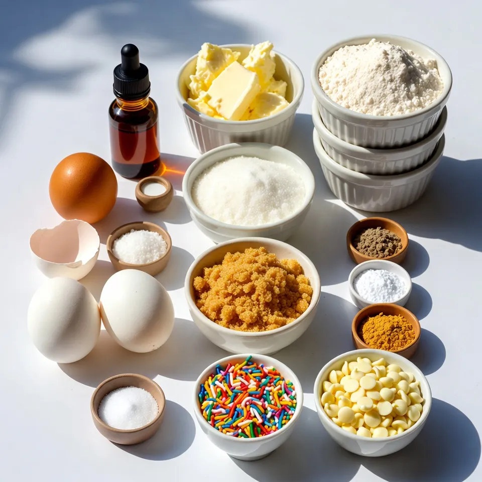 Gather these simple ingredients to make your Funfetti Birthday Cake Cookies: