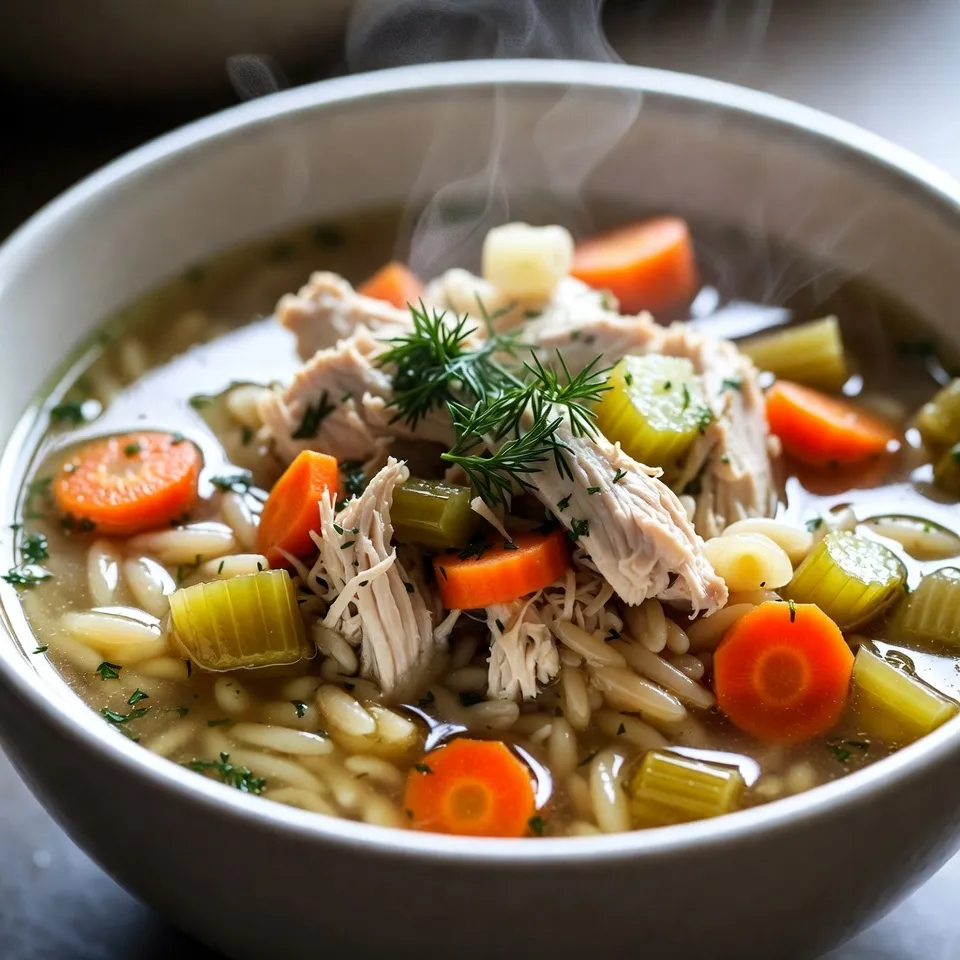 A refreshing and hearty soup made with chicken, orzo, and a bright lemon flavor.