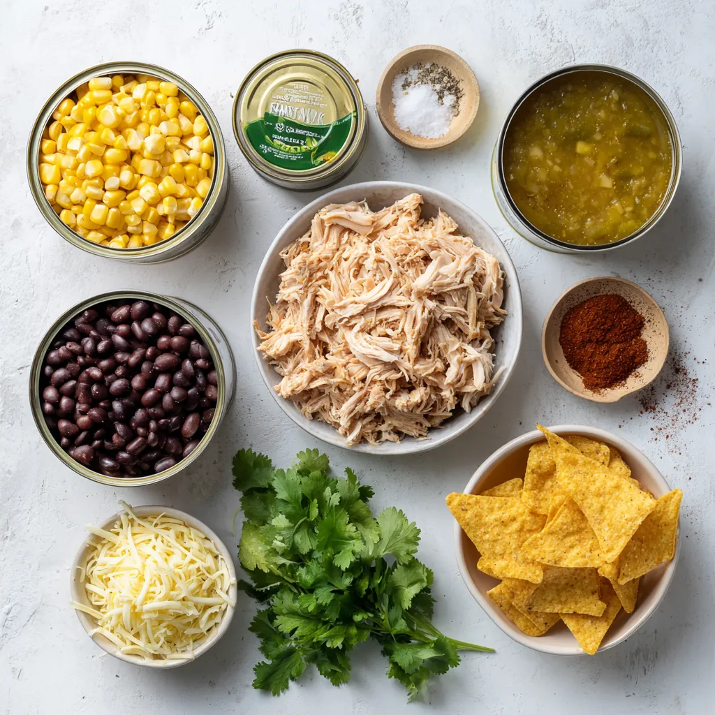 When I make green enchiladas chicken soup, I love to gather all the ingredients first. It keeps me organized and makes cooking more fun. The main ingredients start with shredded chicken. You can use leftovers or cook some fresh chicken. I also rely on a can of green enchilada sauce for rich flavor. The chicken broth adds depth and warmth, while corn brings a nice sweetness.