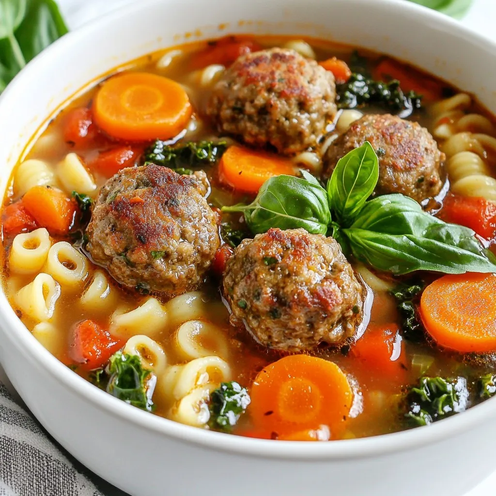 A comforting and flavorful soup filled with tender meatballs, vegetables, and pasta.