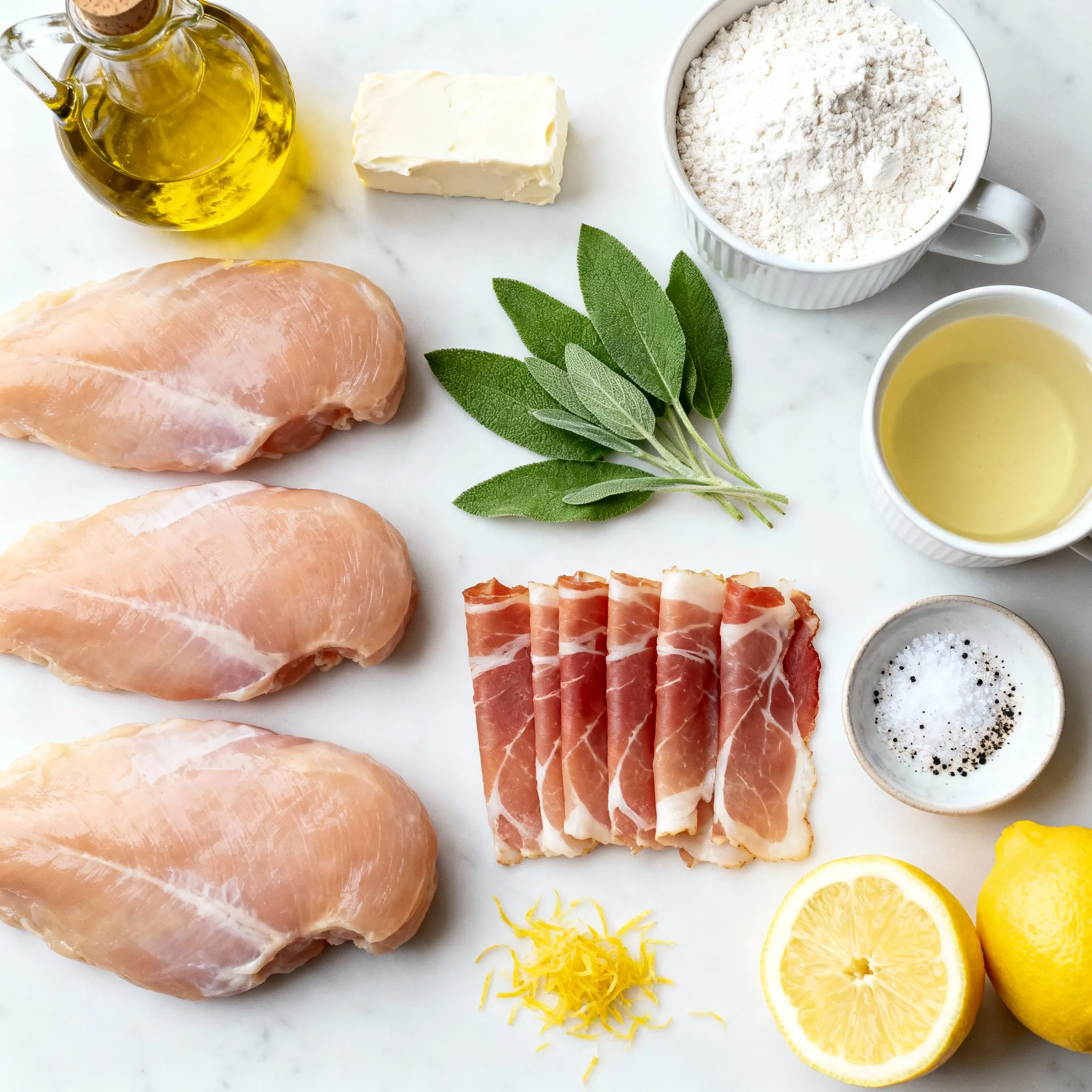 The main ingredients for Italian Chicken Saltimbocca are simple yet flavorful. You start with chicken breasts, which are tender and juicy. Prosciutto adds a salty, savory kick. Fresh sage leaves bring a nice herbal note that pairs well with the chicken.
