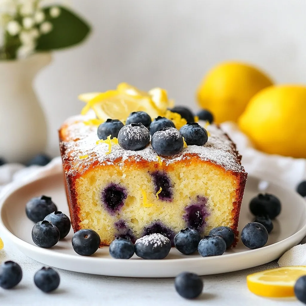 For an elegant serving, slice the loaf and arrange the pieces on a decorative plate. Dust lightly with powdered sugar and garnish with a handful of whole blueberries and a light sprinkle of lemon zest on top for a vibrant, fresh touch.
