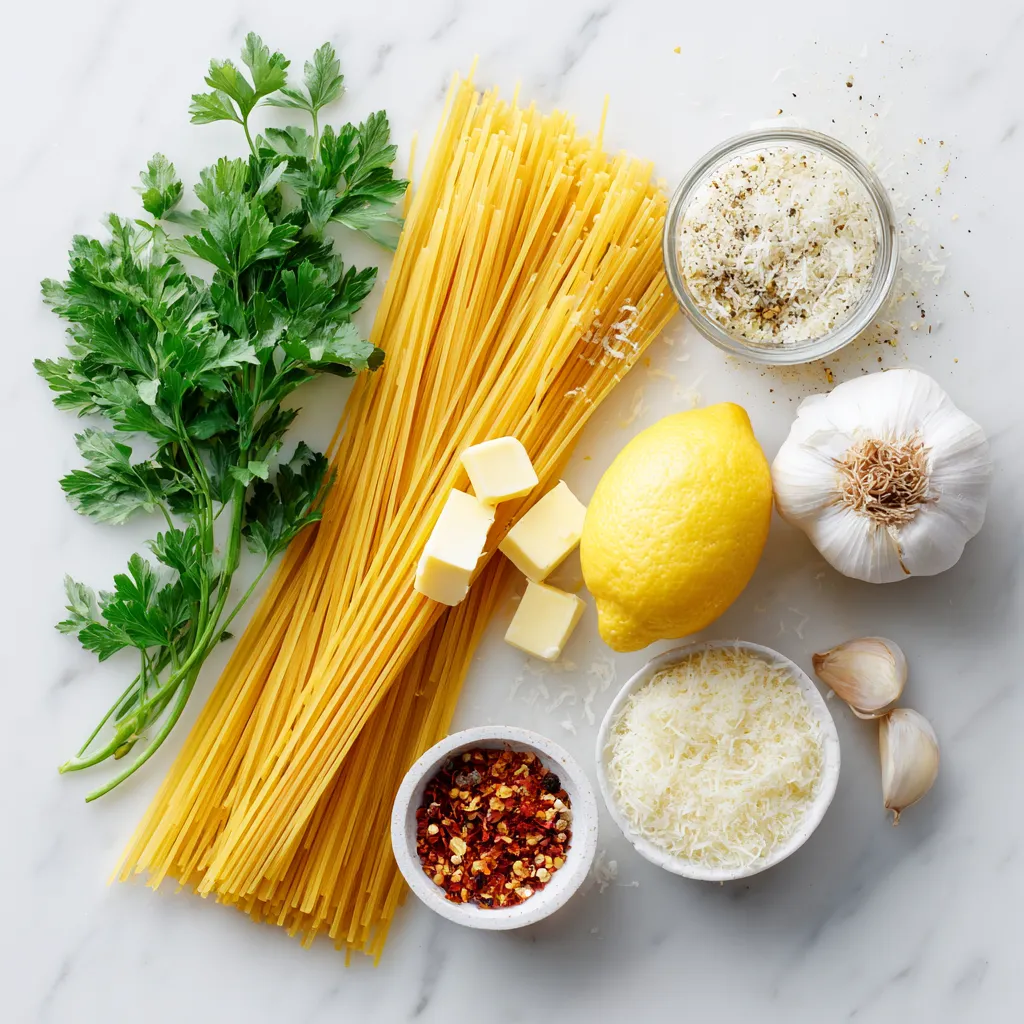 For a tasty Lemon Butter Garlic Pasta, you need: