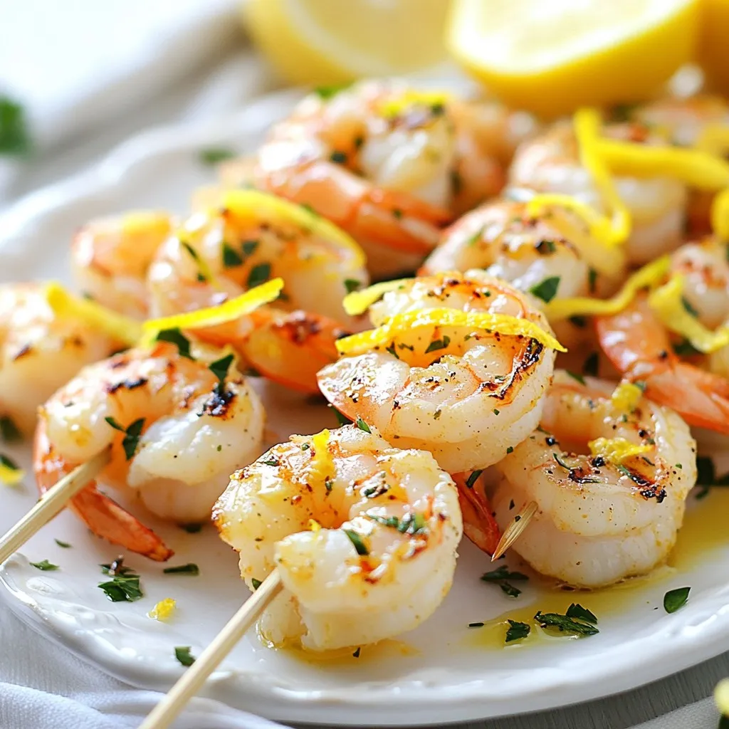 Delicious grilled shrimp marinated in a zesty lemon herb mixture, perfect for summer barbecues.