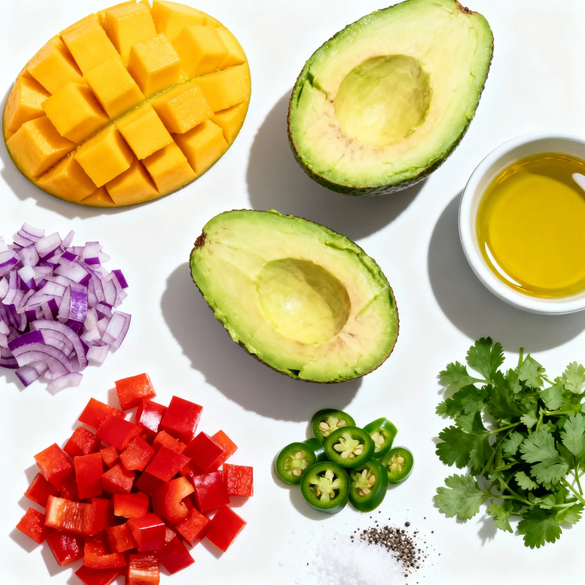A fresh and vibrant salsa made with ripe mangoes and avocados, perfect for summer gatherings.