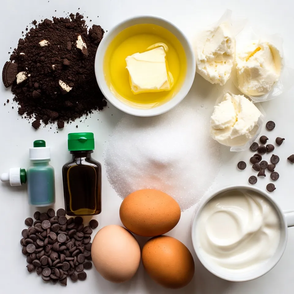 To make a perfect mint chocolate chip cheesecake, you need key ingredients. The chocolate cookie crumbs form a tasty crust. The unsalted butter helps hold the crumbs together. Cream cheese gives the cheesecake its rich and creamy texture. Granulated sugar sweetens the mix just right. The vanilla and peppermint extracts add delicious flavor.