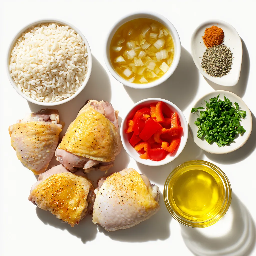 These ingredients form the base of this dish. The chicken thighs bring juicy flavor, while the rice soaks up the broth.