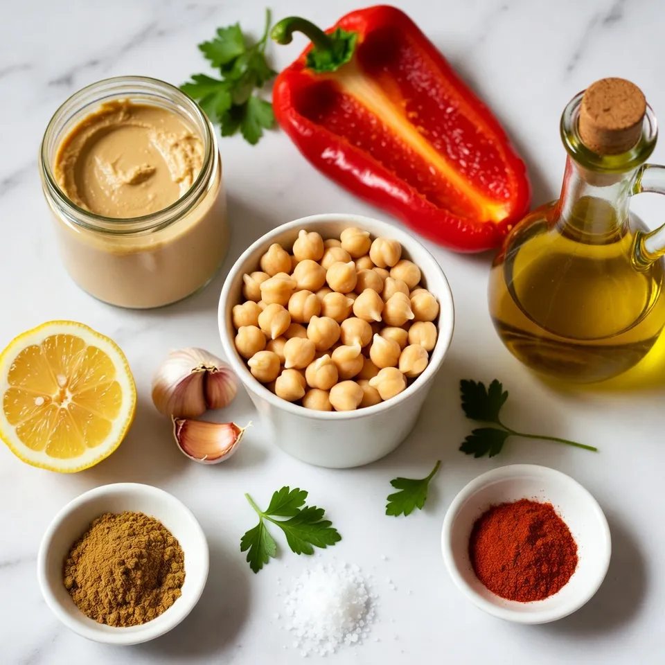 Each ingredient in roasted red pepper hummus plays a key role. Canned chickpeas are easy to use and provide a creamy base. Roasted red pepper adds a sweet, smoky taste that makes this dip special.