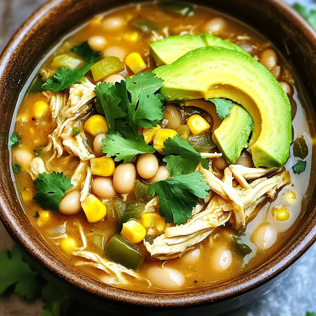 This dish is packed with protein from the chicken and beans. The spices give it a warm, cozy flavor. The beans add fiber to keep you full. Each ingredient plays a part in making this chili comforting and healthy. You can also add garnishes for a fresh touch. Fresh cilantro and avocado slices add creaminess and brightness. A squeeze of lime juice brightens the dish and enhances its flavors. Each bowl is a warm hug on a cold day.