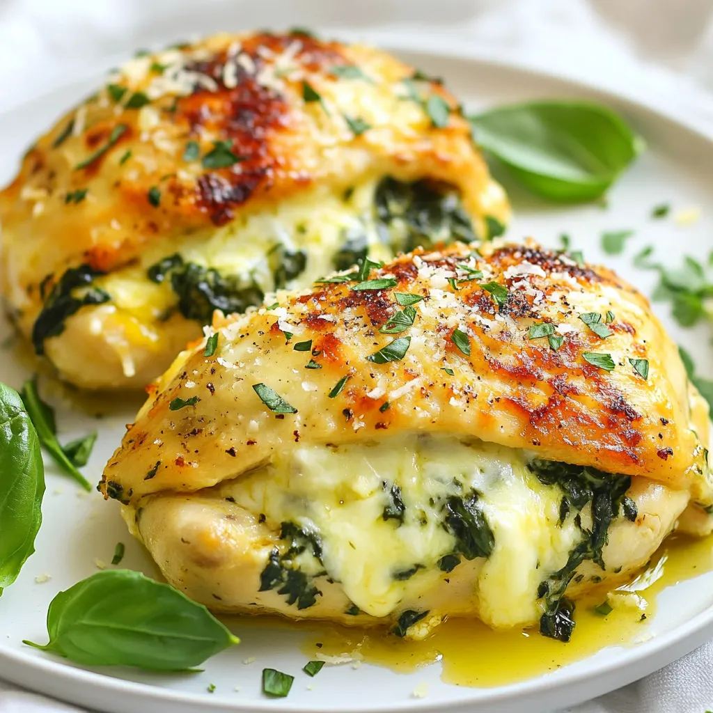 Delicious chicken breasts stuffed with a creamy spinach and cheese mixture, baked to perfection.