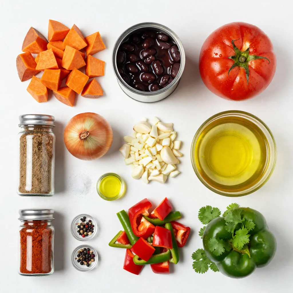 When you gather these ingredients, you set the stage for a rich and hearty chili. Sweet potatoes give it a sweet and creamy texture. Black beans add protein and fiber. Diced tomatoes bring juicy acidity that balances the flavors.