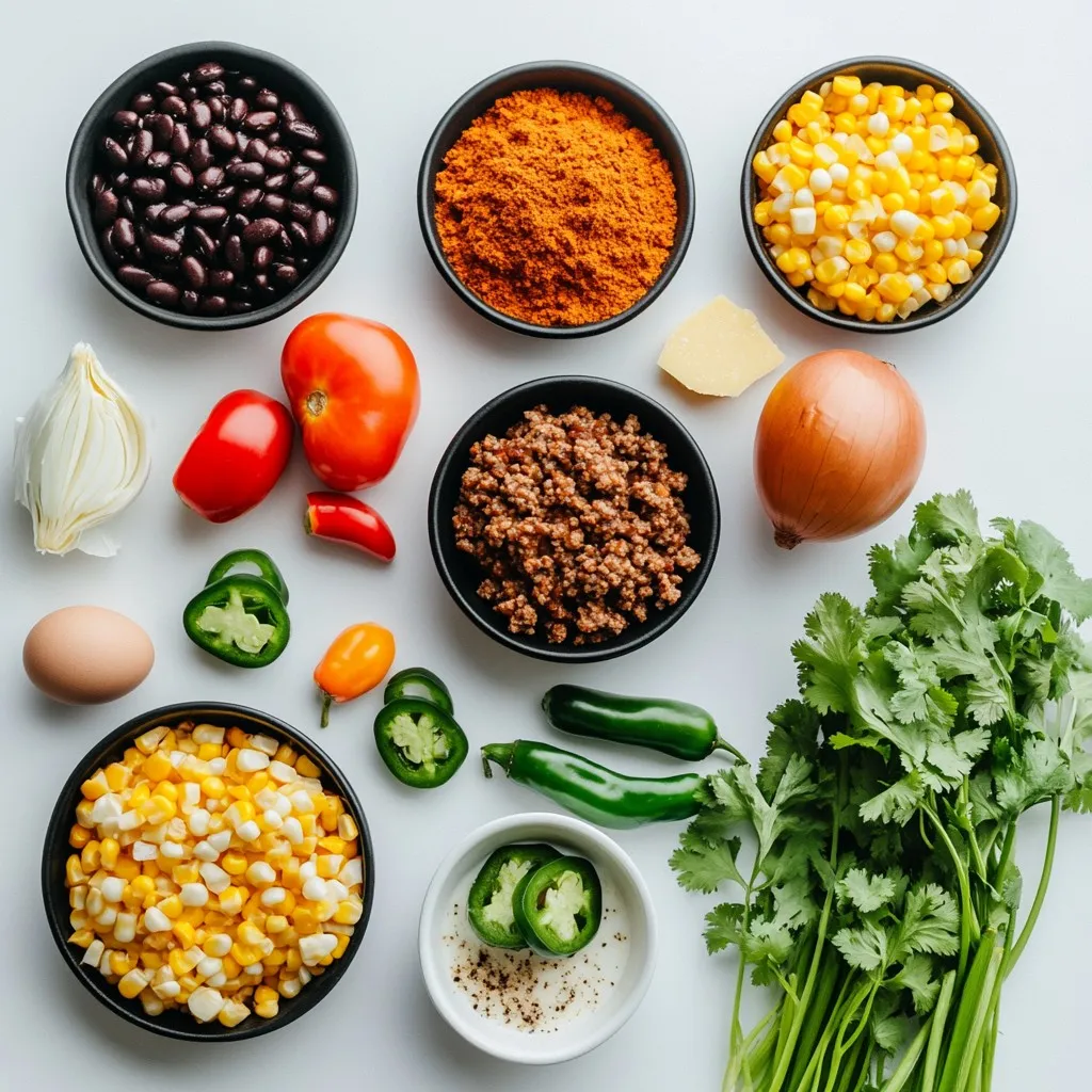 I love the blend of flavors in this dish. The ground beef or turkey gives it a hearty base. The black beans add great texture and protein. Diced tomatoes with green chilies bring a nice zing. The spices, especially chili powder and smoked paprika, create warmth and depth. Corn adds sweetness and balance to the savory notes.