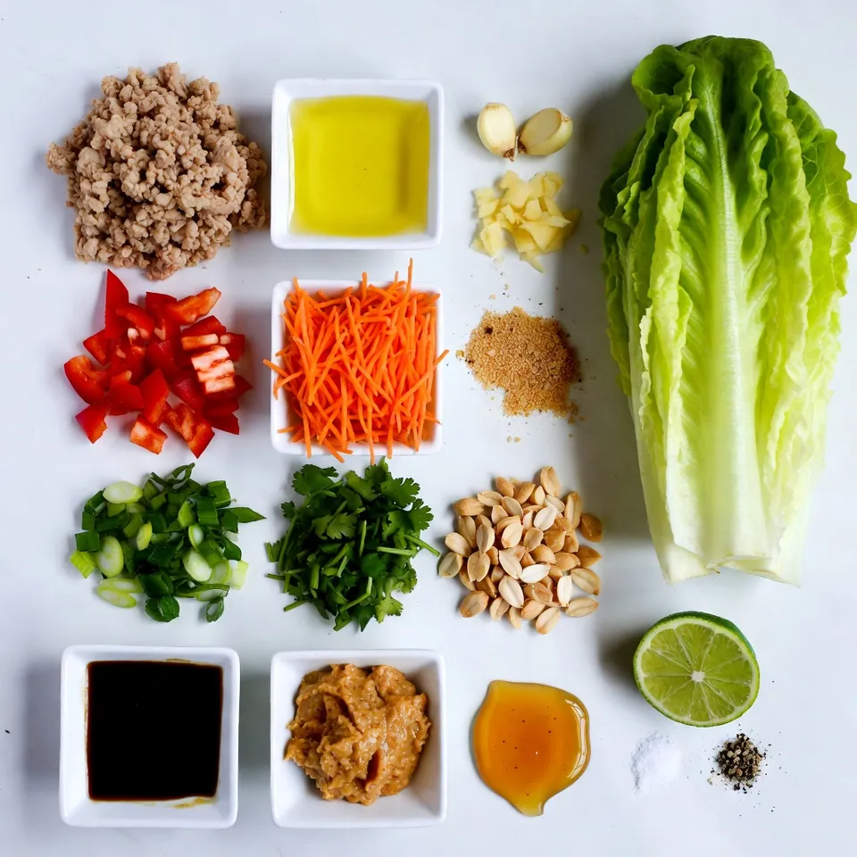 To make Thai peanut chicken lettuce wraps, gather all your ingredients first. This helps speed up cooking. You need ground chicken, sesame oil, garlic, ginger, and fresh veggies. Having everything ready makes the cooking fun and easy.