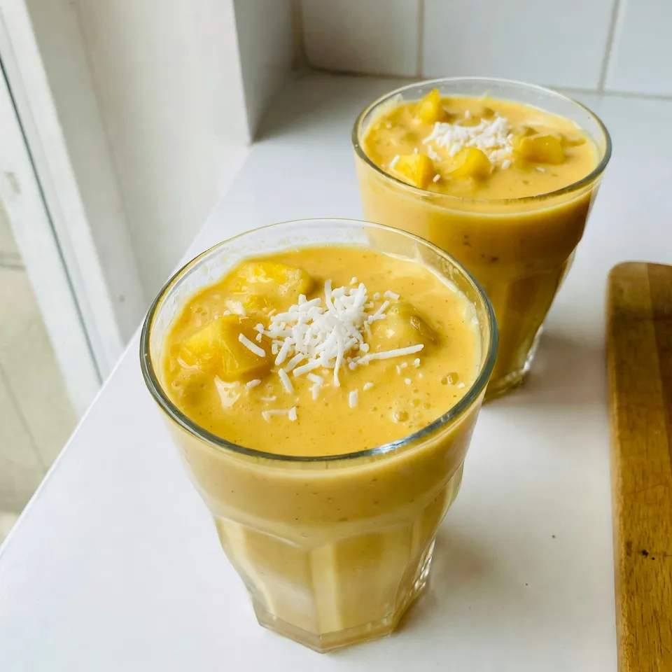 For an eye-catching presentation, pour the smoothie into chilled glasses and garnish with extra shredded coconut or a slice of fresh pineapple.