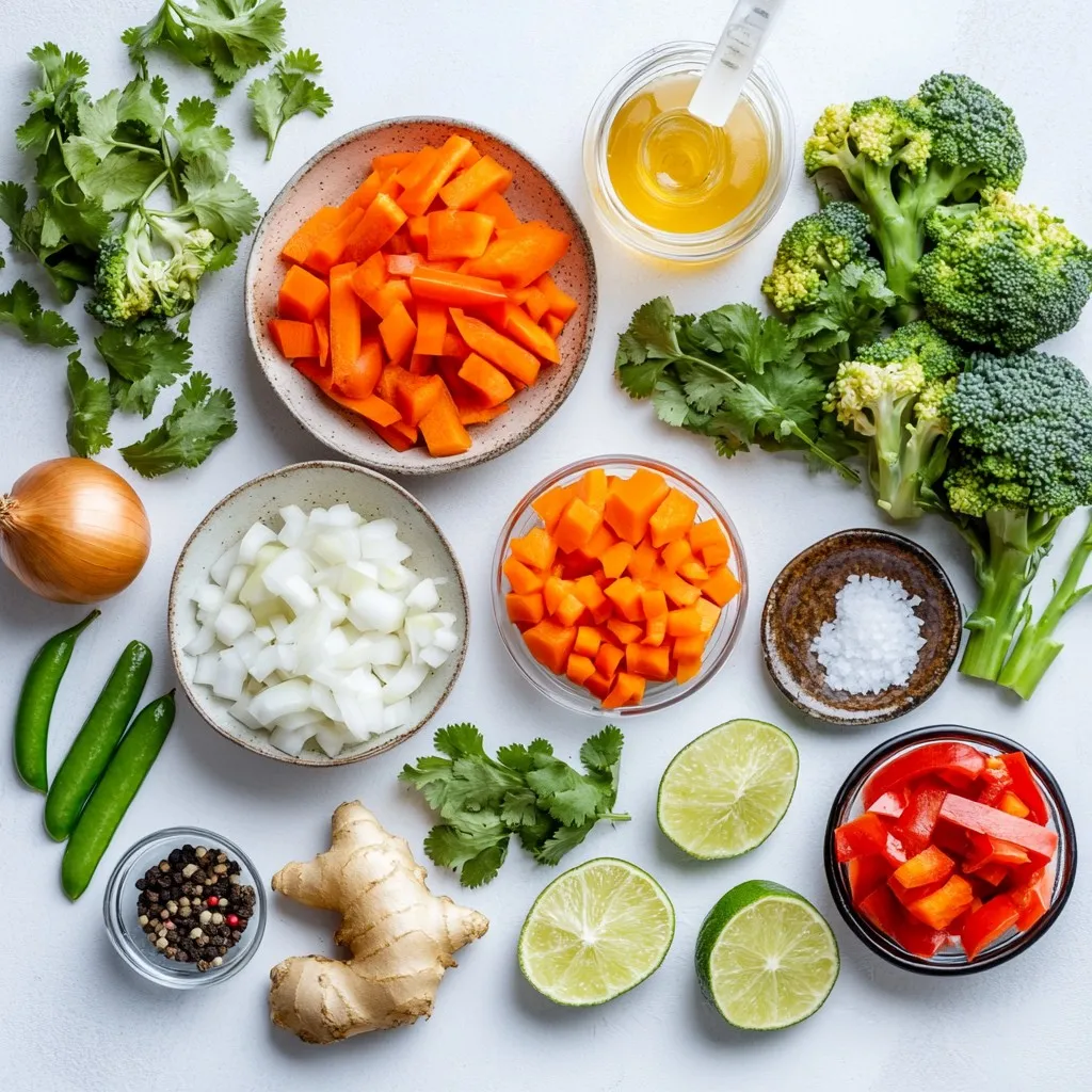 This list is simple but full of flavor. The coconut oil brings richness. The onion, garlic, and ginger create a strong base. The red curry paste adds spice and depth. Coconut milk gives the soup a creamy texture. The vegetable broth keeps it light but flavorful.