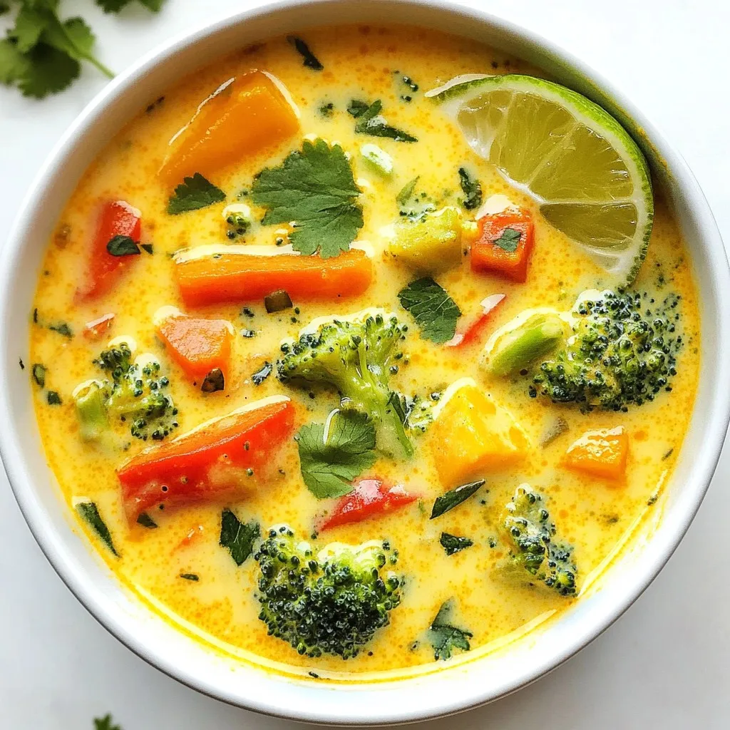 A creamy and flavorful vegan soup made with coconut milk, fresh vegetables, and aromatic spices.